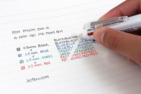 Pilot Frixion 4 ruột bao gồm 4 ruột mầu ( xanh, đen, đỏ, xanh lá) trong cùng một thân bút. Chú ý Không dùng để ký tên hoặc viết trong những văn bản quan trọng, có giá trị về mặt pháp lý.