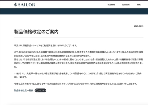 Link thông báo trên Web hãng: https://sailor.co.jp/important.../product-price-change_2025/
