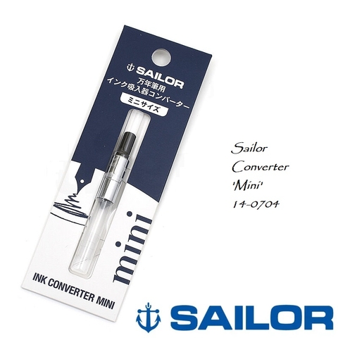 Sailor Converter 'Mini' 14-0704 Converter Sailor cỡ nhỏ này phù hợp với hầu hết các loại bút sử dụng hộp mực bút máy Sailor, bao gồm cả những chiếc bút quá ngắn để sử dụng Converter Sailor tiêu chuẩn. Model Number SAILOR 14-0704-220 Manufacturer Sailor Capacity 0.3...Xem thêm