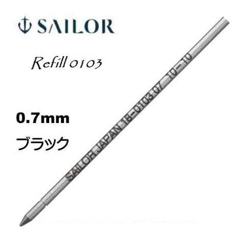 Ruột Bút Bi Sailor 18-0103, phù hợp với bút bi Sailor dáng Slim. [Brand] Sailor SAILOR [Product name] Ballpoint pen refill 0103 [Type] For oil-based ballpoint pens [Color] Black: 18-0103-220 Red: 18-0103-230 Blue: 18-0103-240 [Size] 18-0103: φ2.3 x 67mm Weight: 0.9g [Tip] Stainless Steel 0.7mmXem thêm